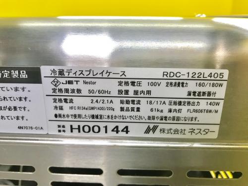 | 商品名 | 未使用品 ネスター 冷蔵ディスプレイケース RDC-122L405 左ユニット 97L |